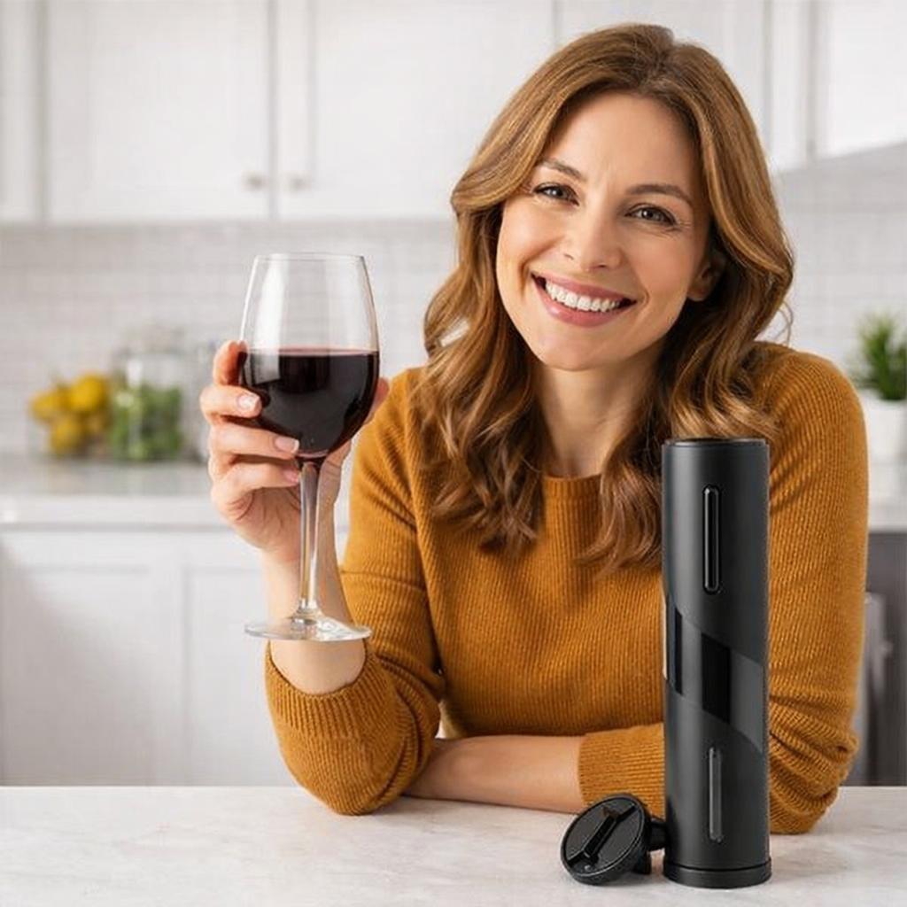 O abridor de vinhos automático (também chamado de abridor elétrico ou saca-rolhas elétrico) é um utensílio de cozinha que remove rolhas de garrafas de vinho através de um motor elétrico, eliminando completamente a necessidade de força física manual. A proposta central é transformar o processo de abrir vinho em algo absolutamente simples, rápido e sem esforço.