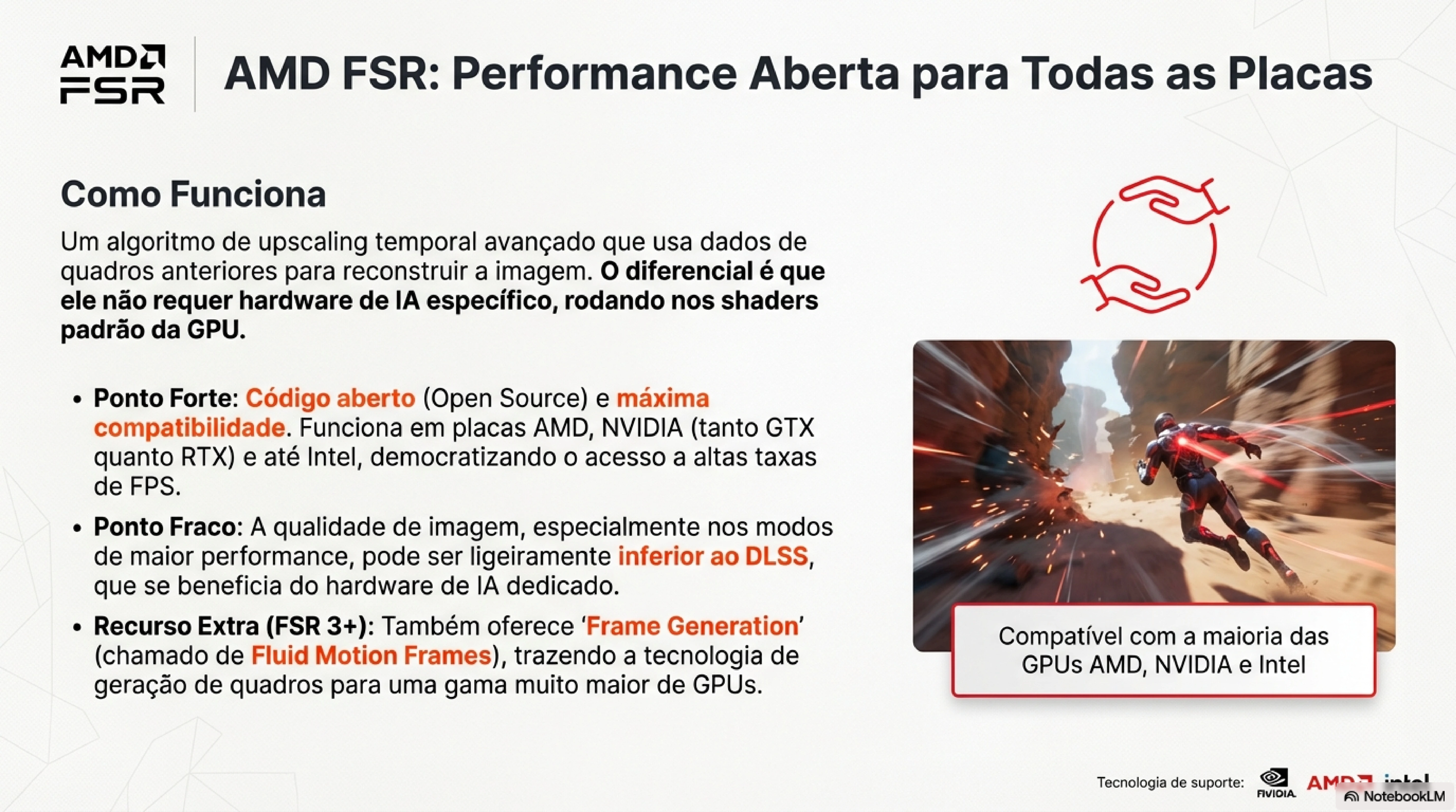Para quem busca melhor custo-benefício em placas de vídeo, FSR democratiza o acesso a tecnologias avançadas de upscaling sem precisar pagar premium por hardware específico.