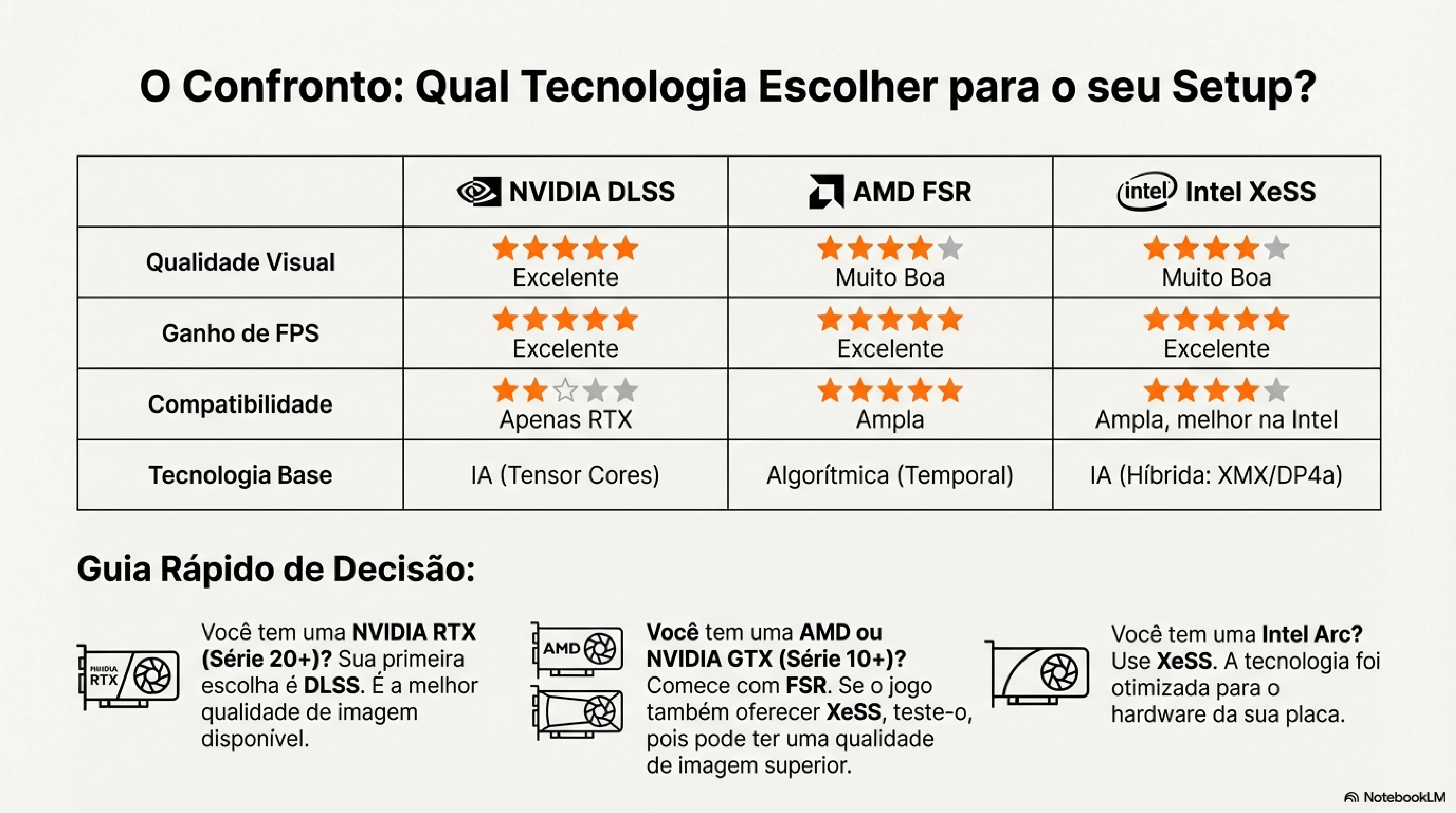A matemática é simples: quanto mais FPS, menos tempo entre cada quadro, menor o input lag e mais responsivo o jogo parece. Para atingir essas taxas sem gastar fortunas em hardware, é onde entram as tecnologias de upscaling que vamos explorar agora.