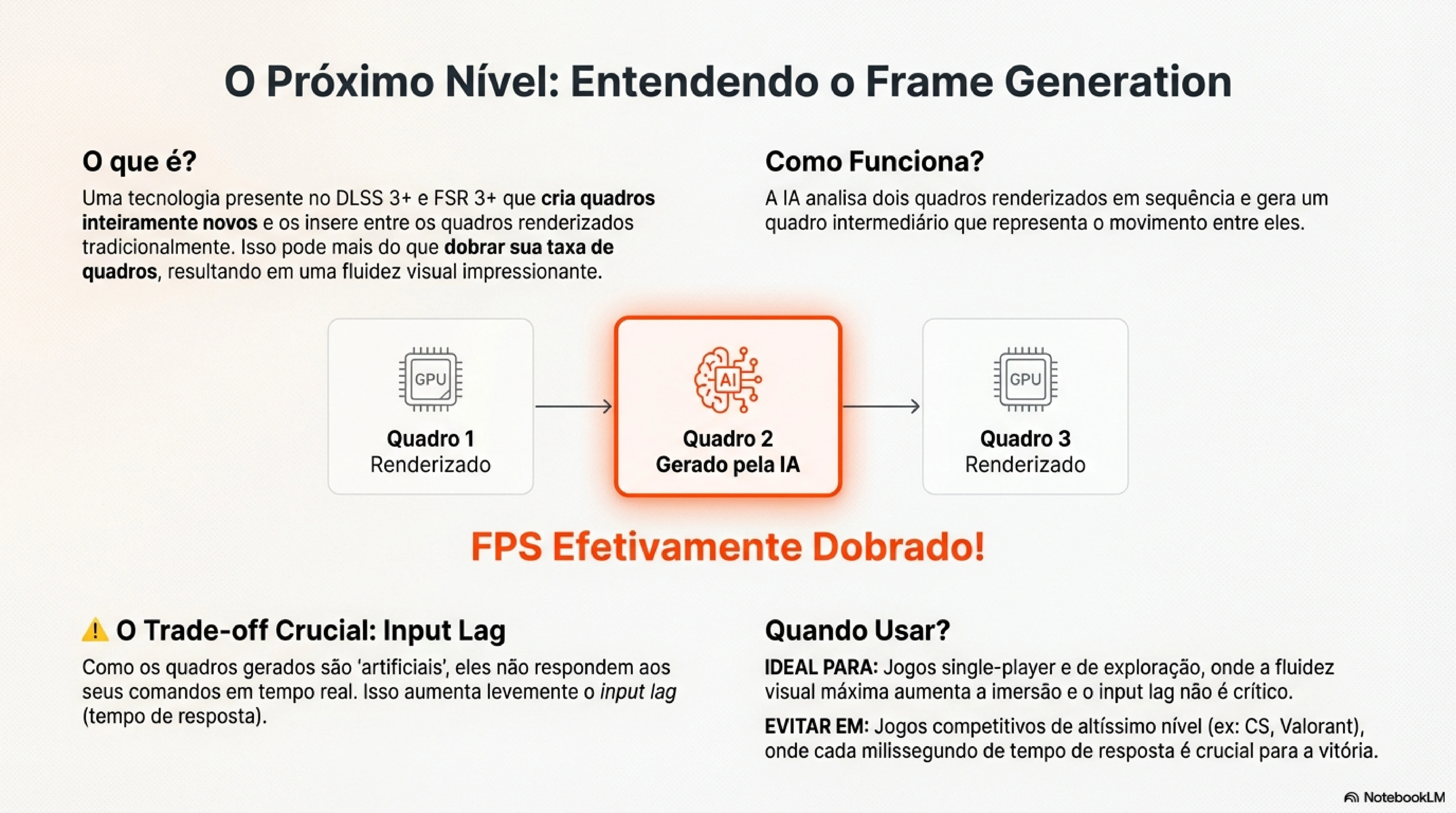 O desafio é manter input lag aceitável e evitar artefatos. A NVIDIA investiu pesado em reduzir latência através de tecnologias como Reflex integrado ao frame generation.