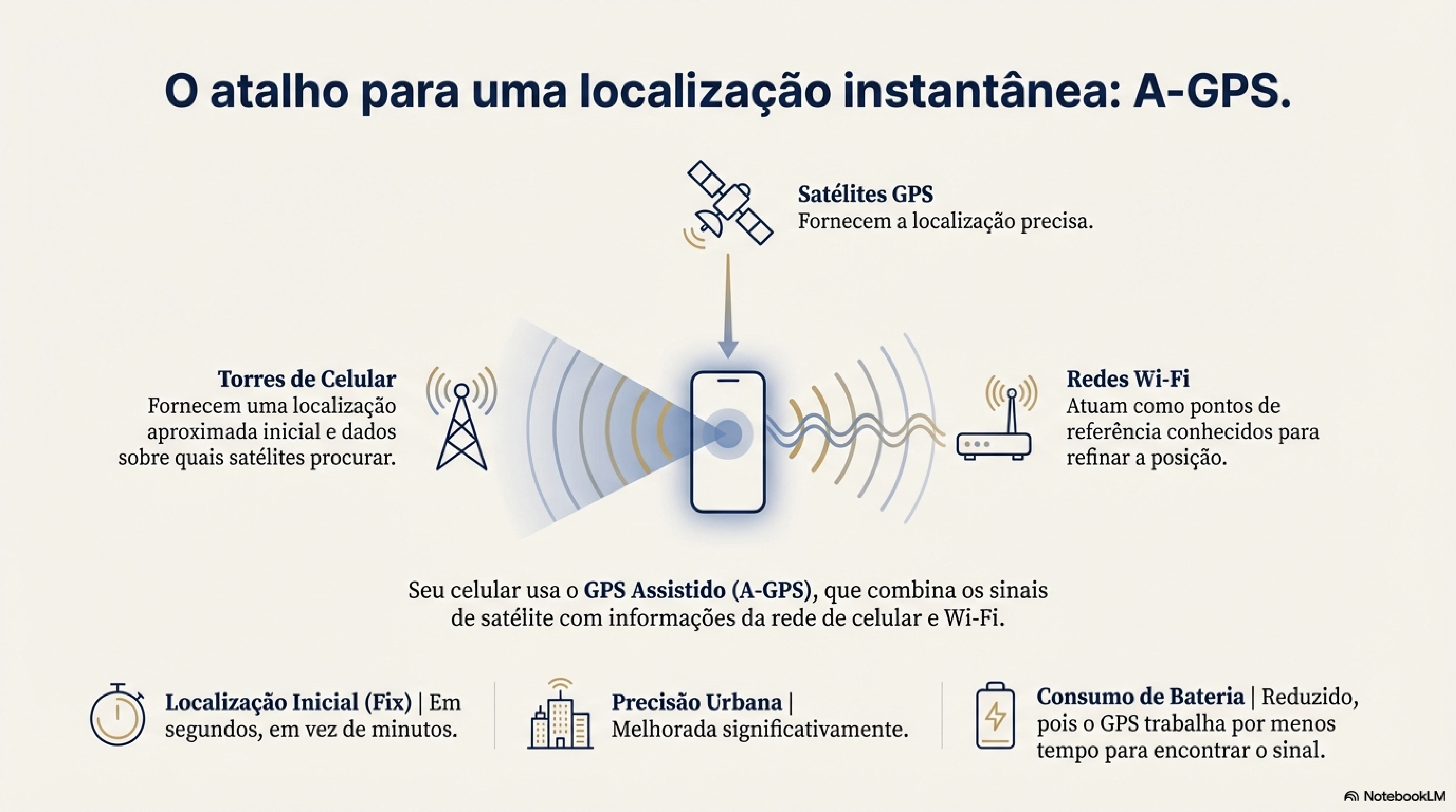 Sim. O GPS usa apenas satélites para localização. Já a localização do Google combina GPS com torres de celular e redes Wi-Fi próximas para aumentar a precisão e acelerar a identificação da posição, especialmente em áreas urbanas.