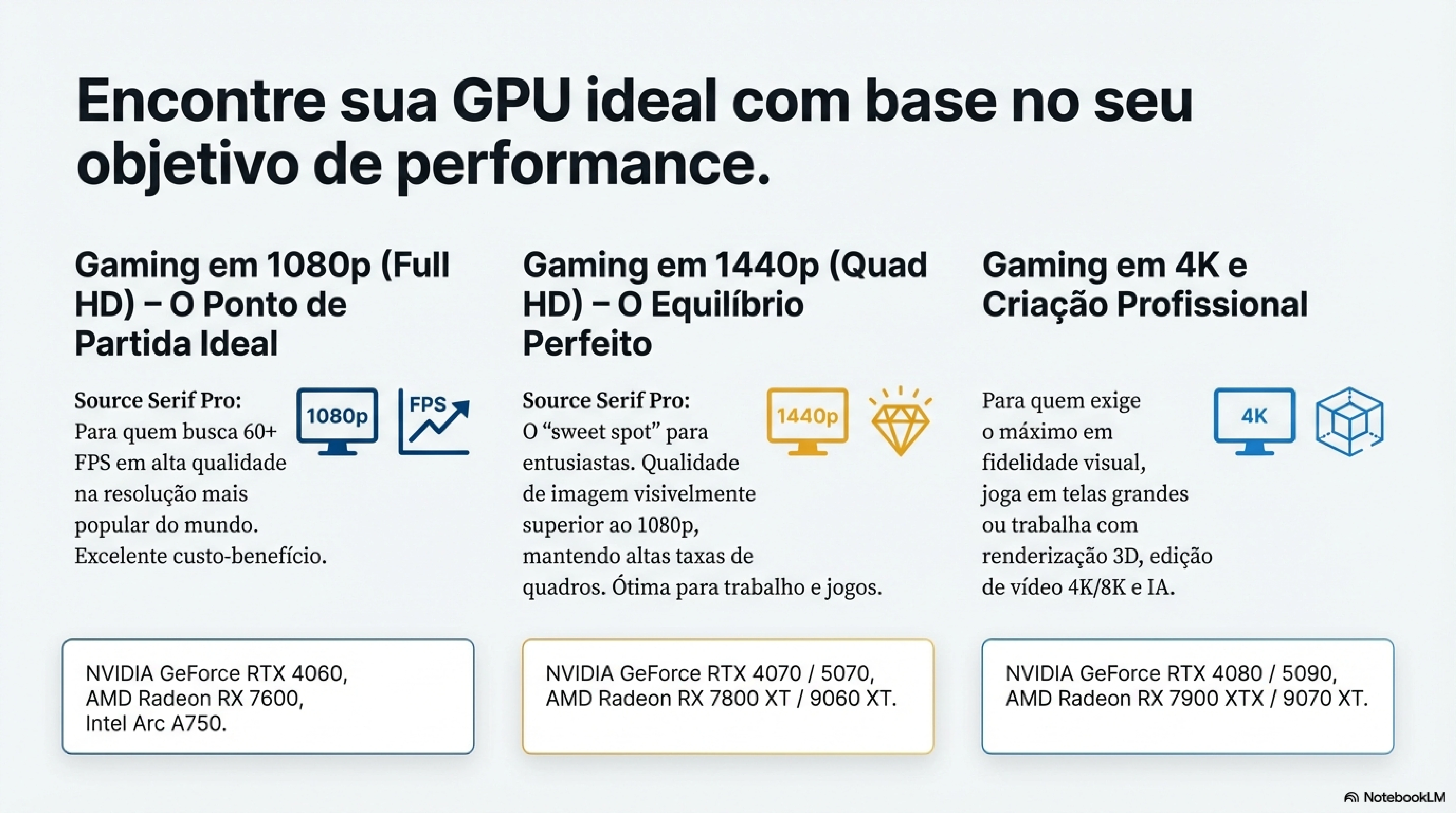 Ideal para: Jogos modernos, edição de vídeo profissional, renderização 3D, design gráfico, streaming de jogos e trabalhos com inteligência artificial.